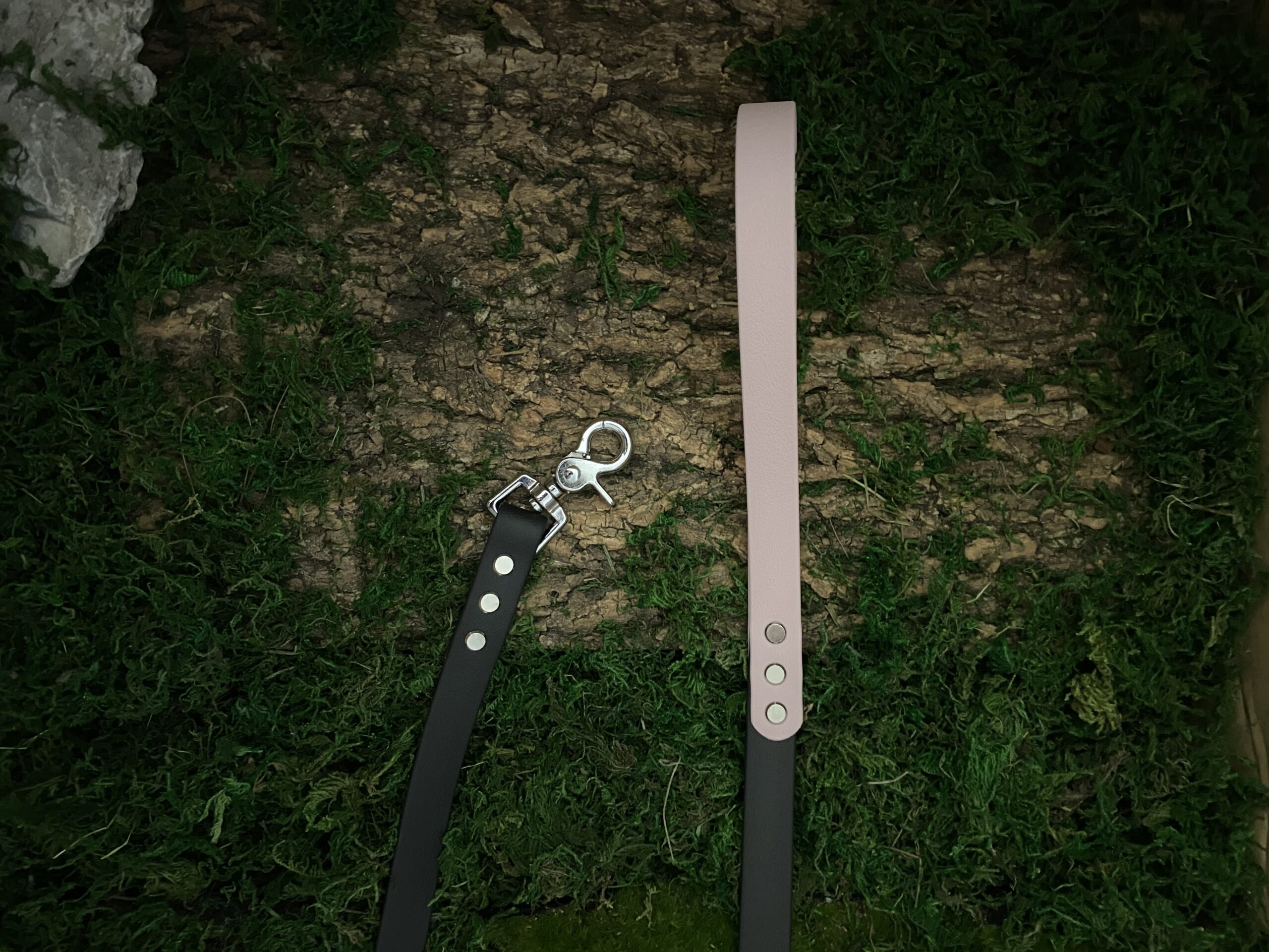 Découvrez notre laisse en Biothane bi-couleur, faite main en France pour allier solidité, confort et style. Sa poignée couleur beige contraste avec le noir profond du reste de la laisse, pour un rendu élégant et intemporel.